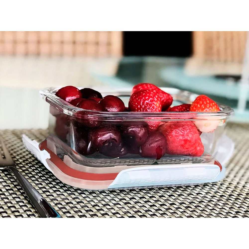 O pote BrasCooker feito em vidro borossilicato, veio no formato quadrado com capacidade de 320ml. É ideal para armazenar seus alimentos, deixando frescos por mais tempo. São práticos e fáceis de usar, livres de BPA, que é uma substância presente em plásticos. São 100% herméticos (a prova de vazamentos). Barreira contra odores. Pode ser levado ao micro-ondas, freezer e máquina de lavar louças. Tampa com 4 travas, vem com anel de silicone removível.