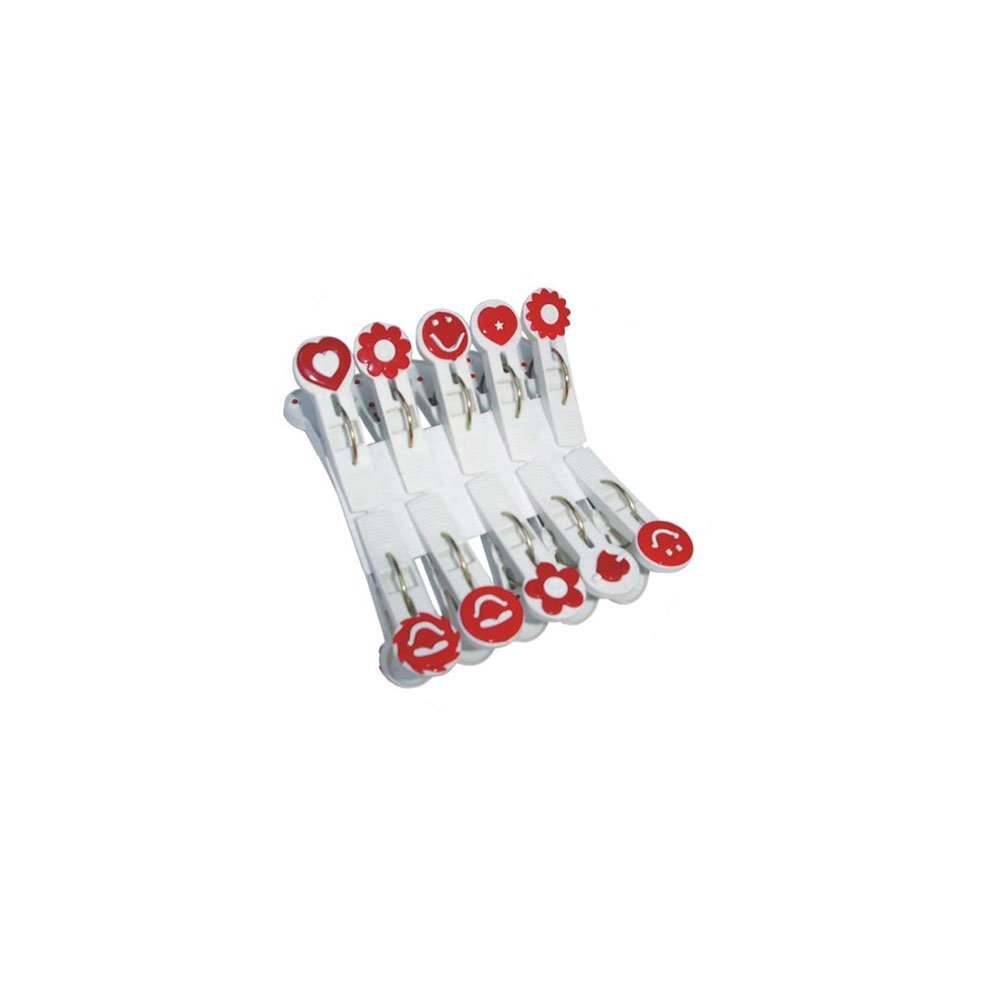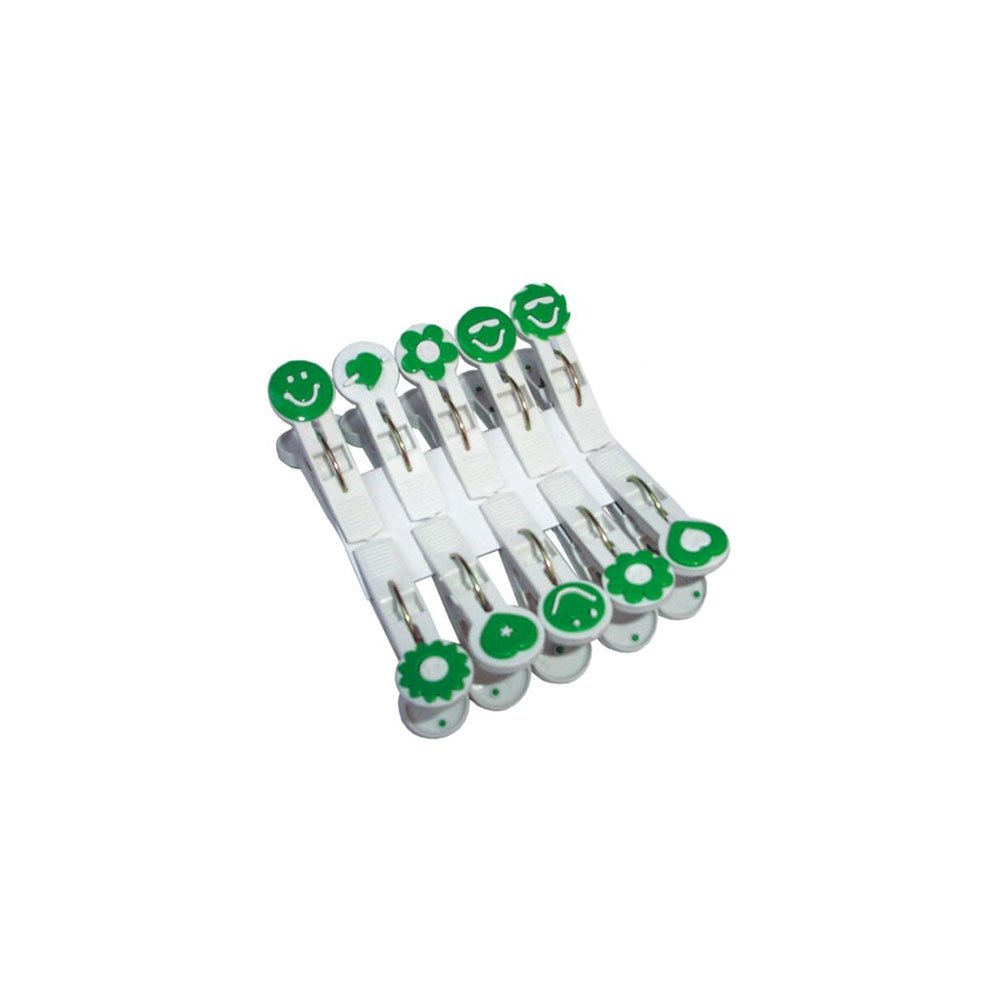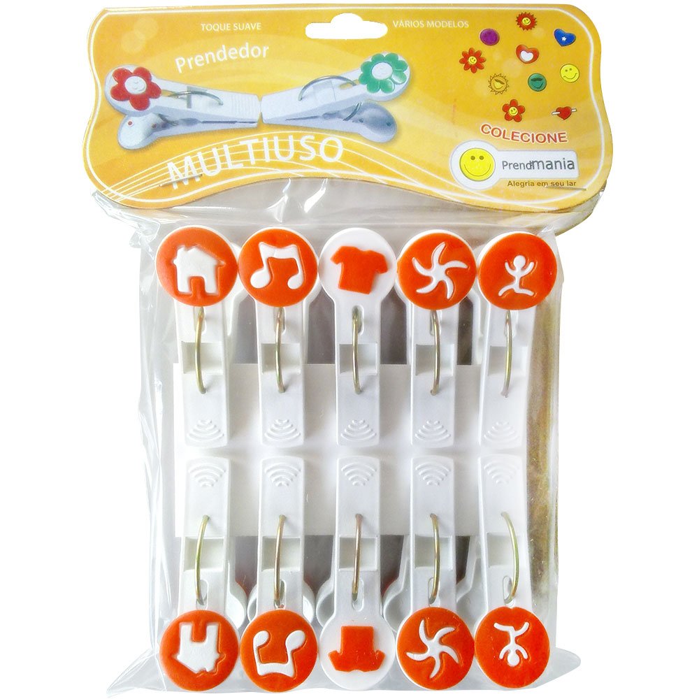 Os Prendedores Decorados Poly Play podem ser usados para pendurar roupas, fechar embalagens, em peças de artesanato ou para segurar pequenos bilhetes. O pacote conta com 10 peças produzidas em aço e plástico branco e colorido.
