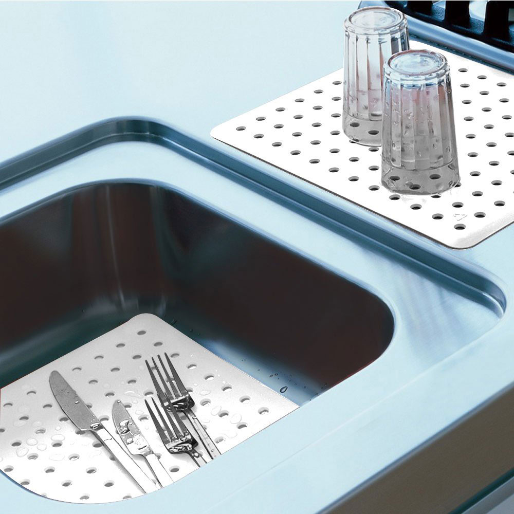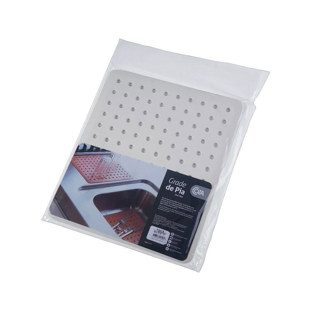 O Protetor de Pia da Coza pode ser usado como escorredor de louça, já que os furos permitem que a água escoe, também pode funcionar no fundo da pia para evitar que resíduos escorram pelo ralo e para apoiar panelas quentes de até 50 graus. Possui pinos antiderrapantes na parte inferior da grade, reciclável e disponível na cor branca. Para preservar o seu utensílio, não leve-o à lava-louças. Indicado para proporcionar mais higiene a sua cozinha.
