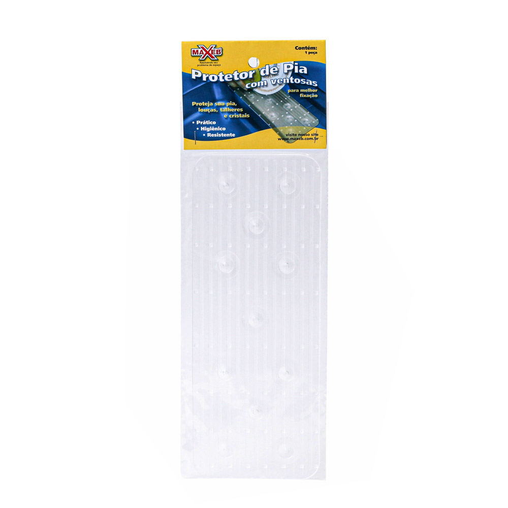 O Protetor de Pia em Plástico com Ventosa da Maxeb é ideal para que você apoie panelas e outros utensílios na hora de lavar, evitando que arranhe a superfície da sua pia. Com ventosas, proporciona maior aderência, evitando acidentes na sua cozinha. Tem dimensões de 30,3 x 11,8 cm e é fácil de ser higienizado.