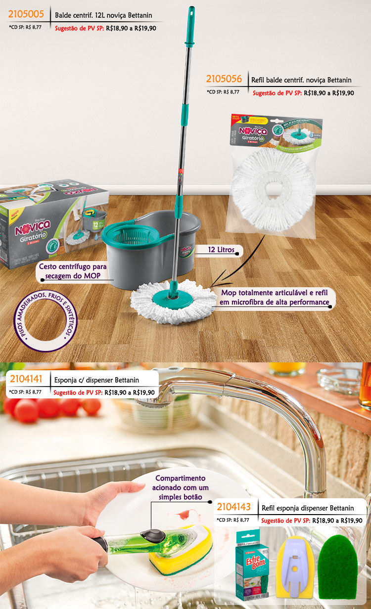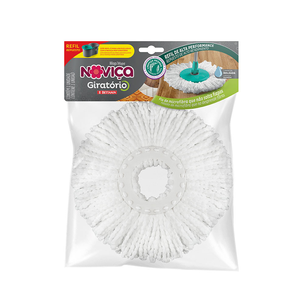 Com o Refil Mop Noviça Giratório Bettanin você pode limpar pisos amadeirados, frios e sintéticos com muita eficiência. Produzido em microfibra, não solta fiapos e é perfeito para limpeza ?molhada? e pesada. Refil de alta performance.