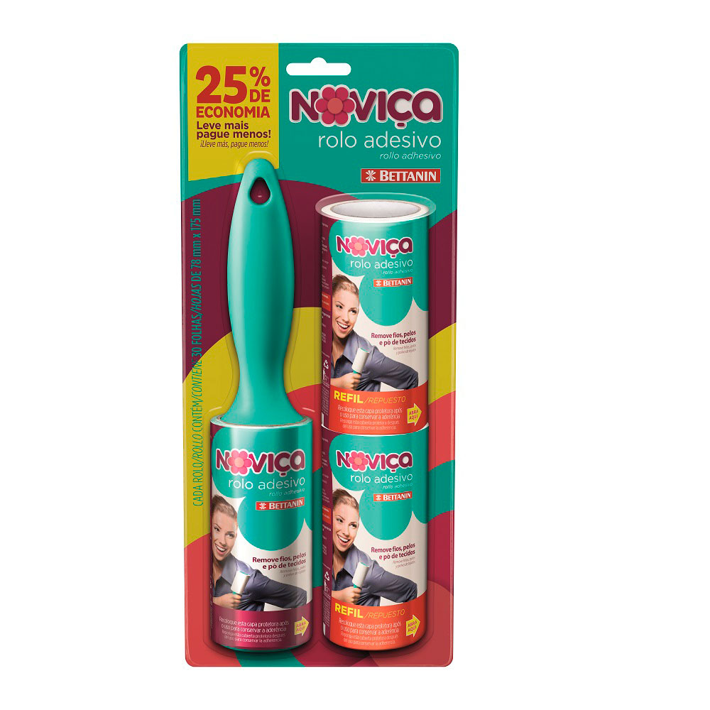Com o Rolo Adesivo Folhas Bettanin você deixa suas roupas sem poeiras, fios de cabelo, fiapos, pelos ou resíduos. Possui cabo amarelo reutilizável e prático, possibilitando a troca fácil de refil. O kit conta com 1 rolo de adesivos e 2 refis com 30 folhas cada.