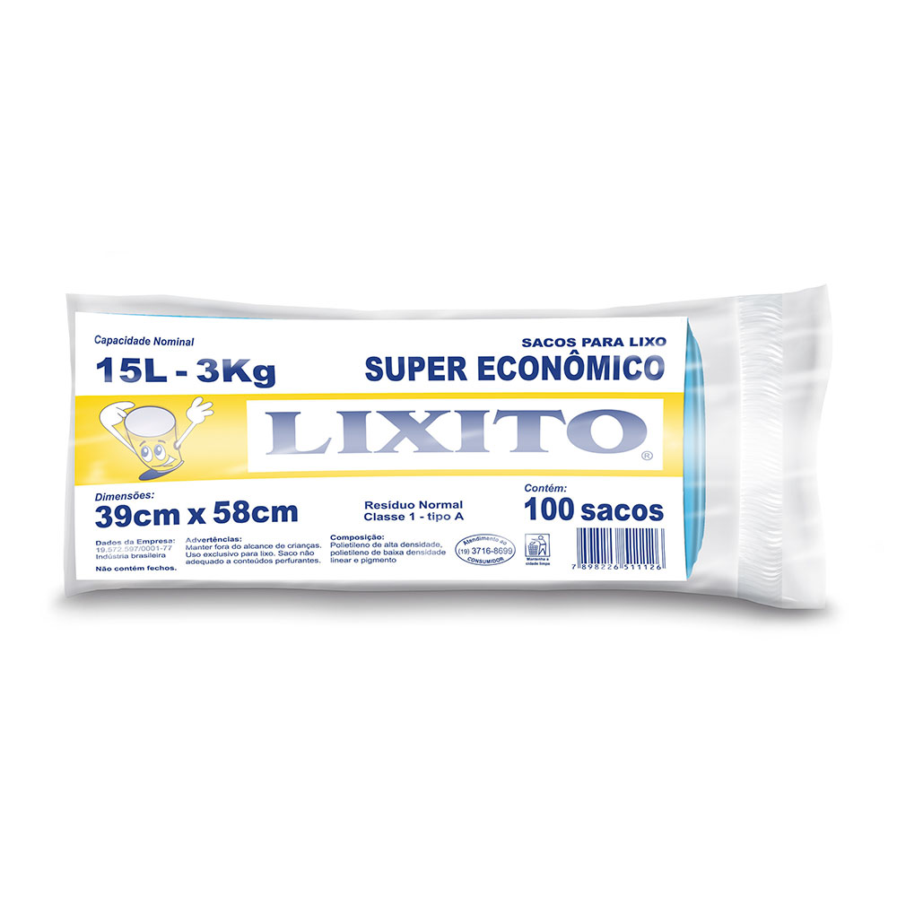 O Saco de Lixo Econômico Lixito vem com 100 unidades de sacos azuis com capacidade para 15L/3kg, sendo super resistentes e ideais para lixeiras pequenas.