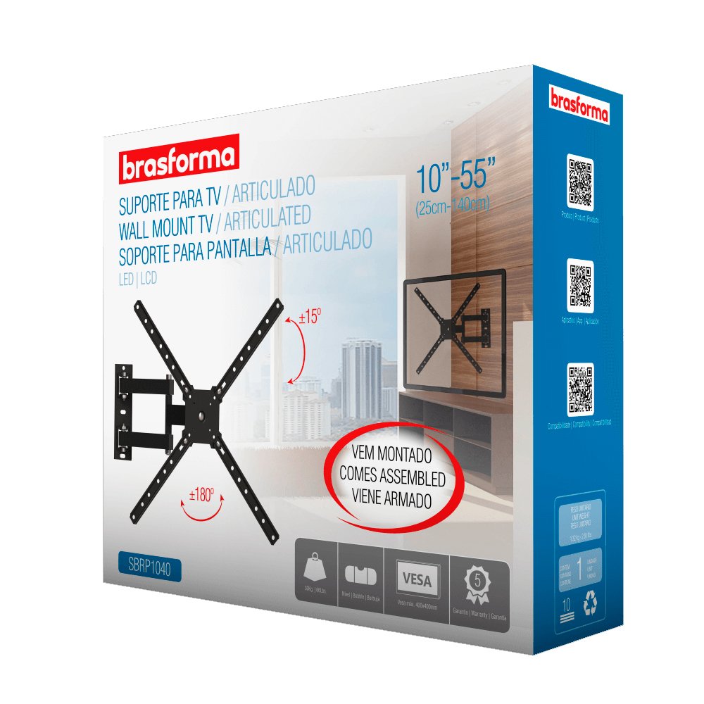 Suporte Articulado/Inclinável para TV LCD/LED/3D/Plasma de 10″ a 55″ Brasforma SKU: 2083837