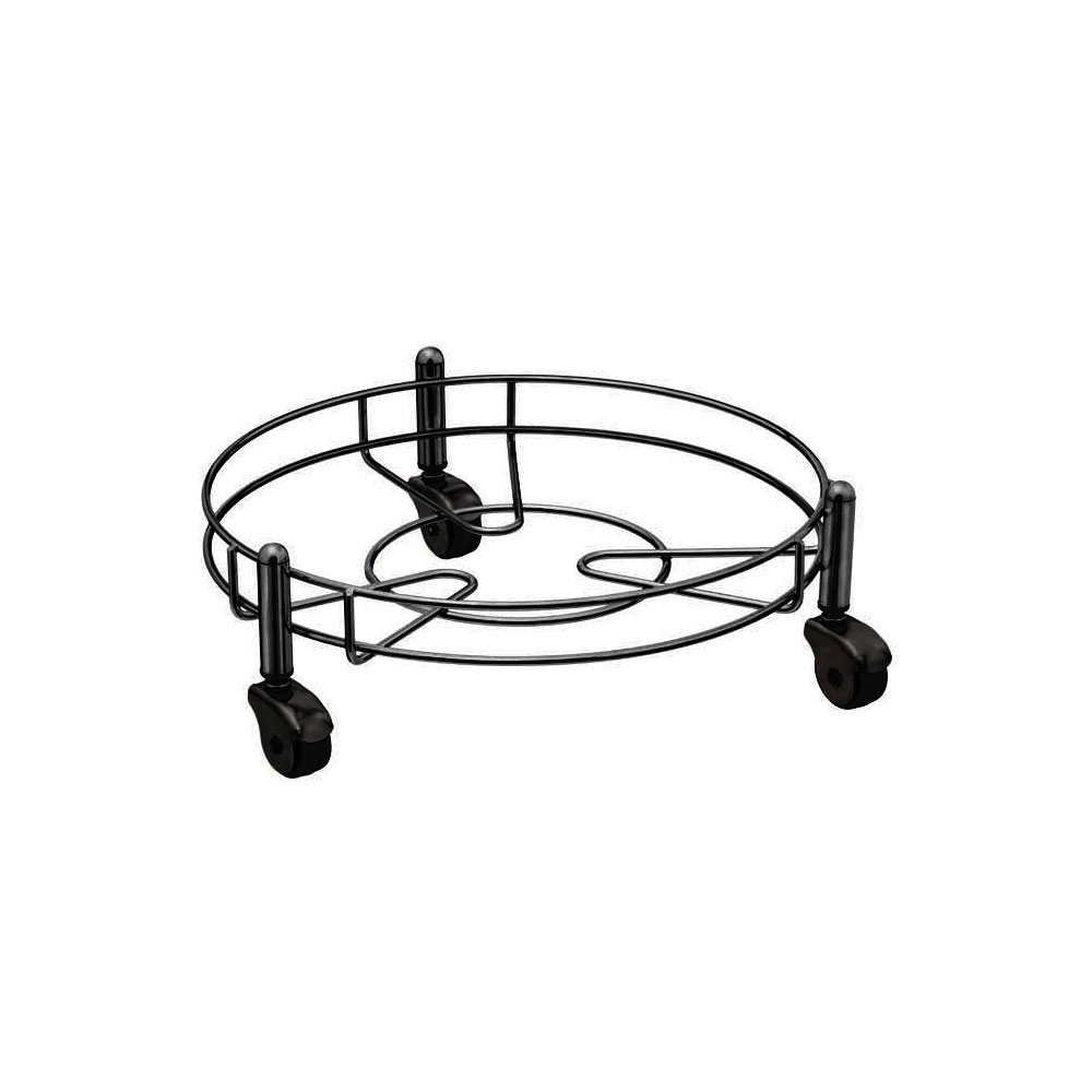 Suporte para Botijão de Gás Itatiba, feito em metal cromado preto resistente e com rodízio para movimentá-lo facilmente. Ideal para transportar botijões de gás e vasos de flor com segurança e praticidade. Suporta até 85 kg.