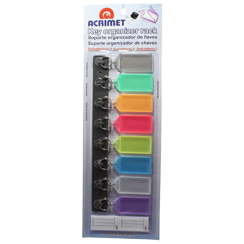 Suporte Organizador de Chaves com 8 Chaveiros Acrimet, confeccionado em plástico resistente, é ideal para residências e estabelecimentos comerciais. Chega de chaves espalhadas e bagunçadas, organize todas as chaves com as 12 etiquetas de cores sortidas.