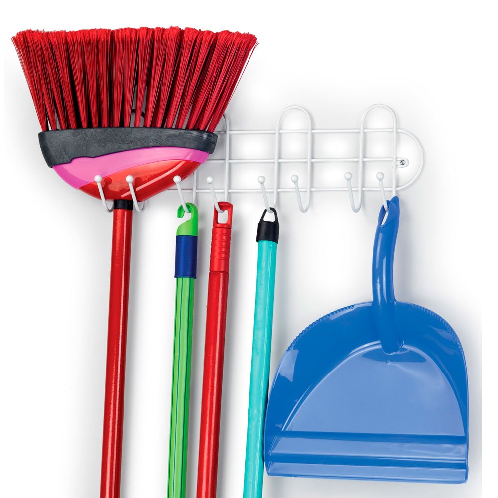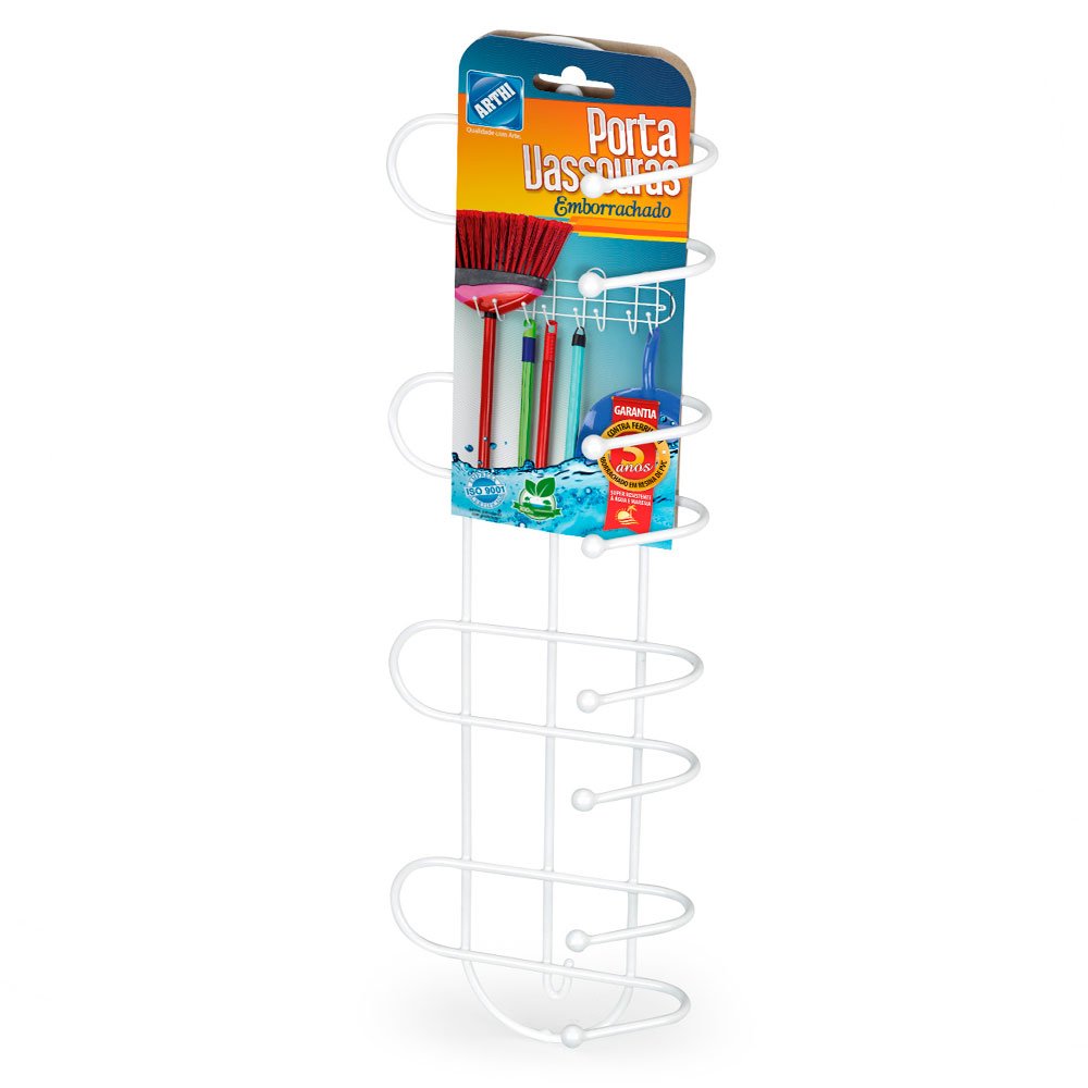 O Suporte Organizador Porta Vassouras Arthi possui 8 ganchos para deixar sua área de limpeza, organizada e otimizada. Produzido em aço branco com acabamento emborrachado evitando que enferruje. Com aproximadamente 41cm de largura é fixado na parede através de buchas e parafusos.