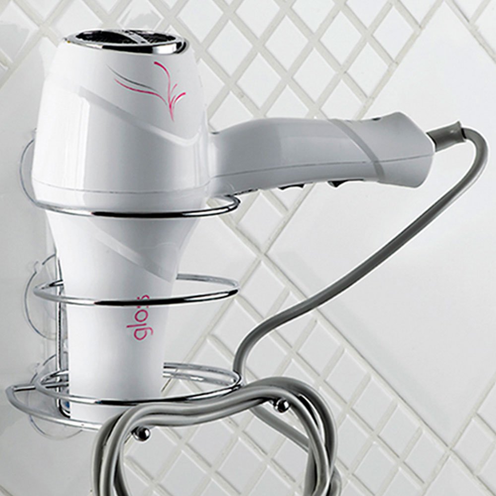Suporte para Secador de Cabelo Arthi, prático e de fácil instalação. Possui sistema de sucção por ventosas, eliminando os furos, a sujeira e o uso de ferramentas para a colocação da peça na parede. Confeccionado em aço cromado resistente com dupla proteção, tem formato redondo para encaixar o secador e suporte na parte debaixo para colocar o fio.