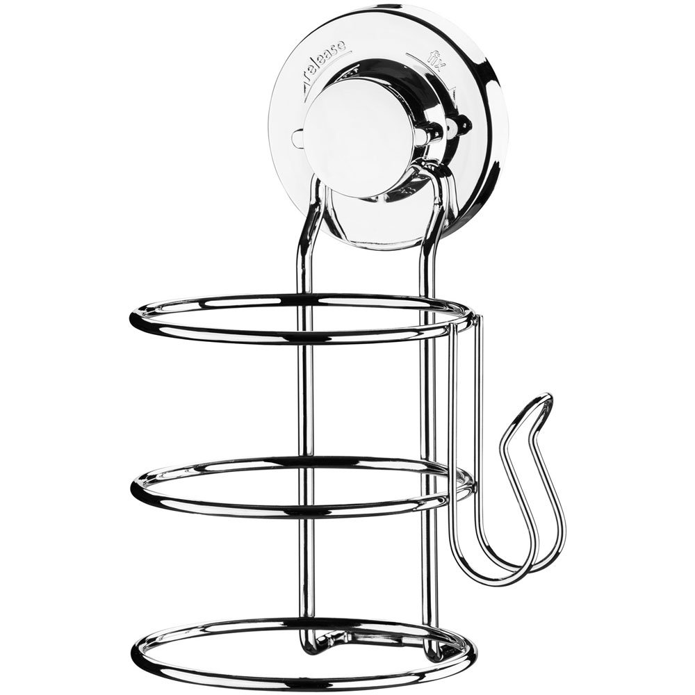 Suporte para Secador de Cabelo Future, prático e de fácil instalação. Possui sistema de sucção por ventosas, eliminando os furos, a sujeira e o uso de ferramentas para a colocação da peça na parede. Confeccionado em aço cromado, tem formato redondo para encaixar o secador e suporte lateral para colocar o fio.