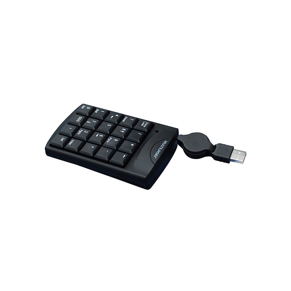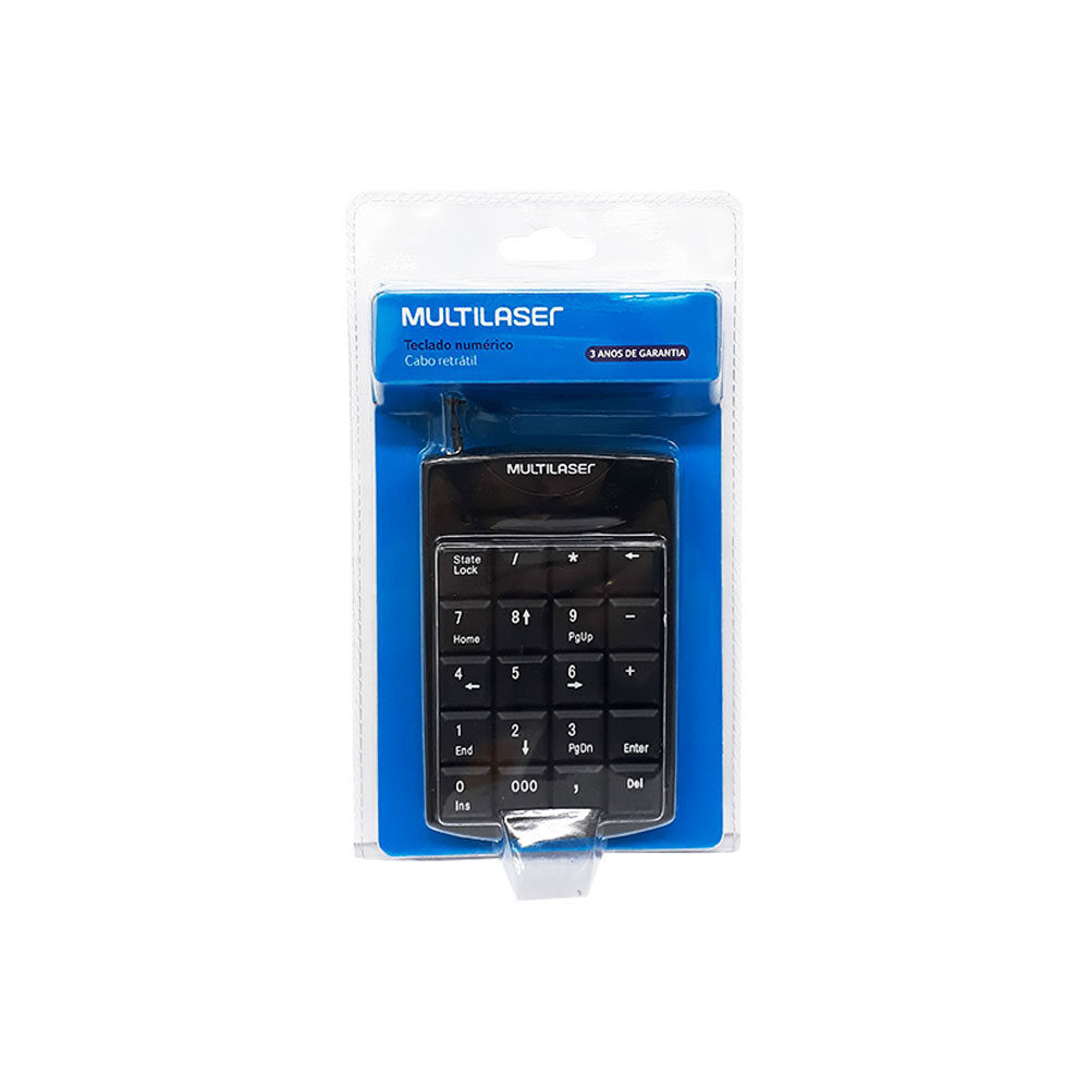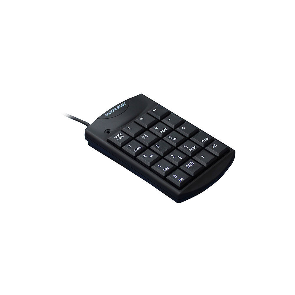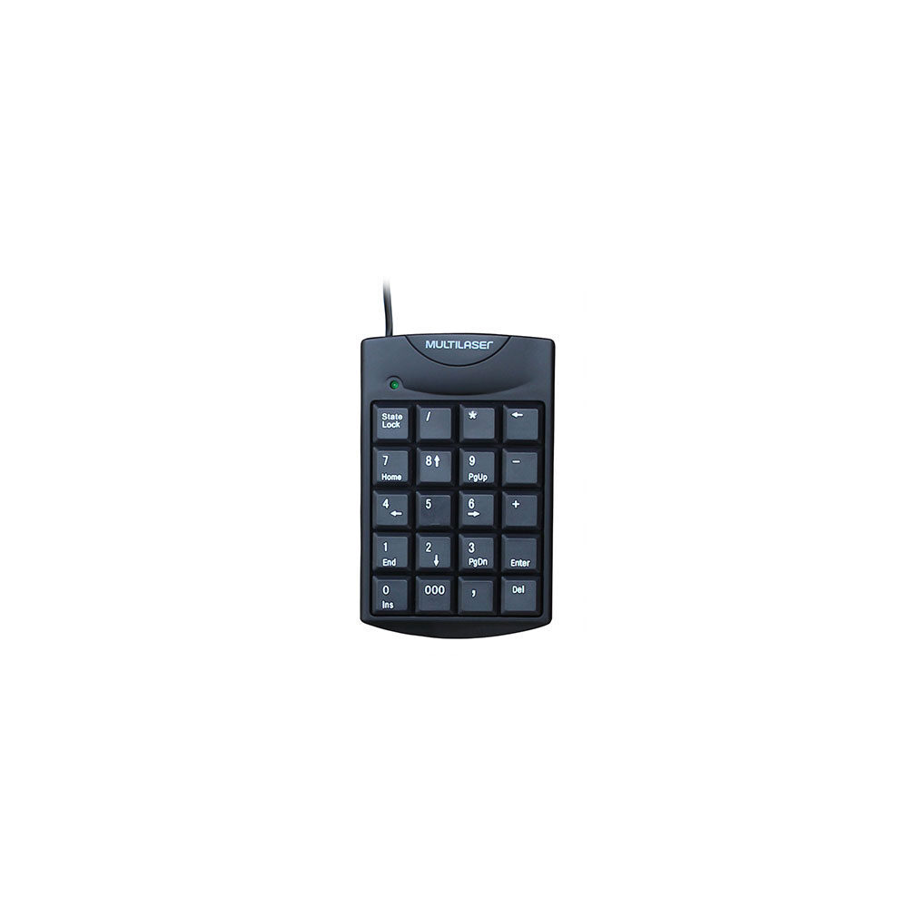 Teclado Numérico TC230 Multilaser com conexão por Fio USB, seu cabo é retrátil e tem 100cm de comprimento. Ideal para notebook, possui teclas macias e silenciosas, e é compatível com windows e mac os. Produzido em plástico na cor preto, possui design clássico e é um item versátil para o uso em casa ou escritório.