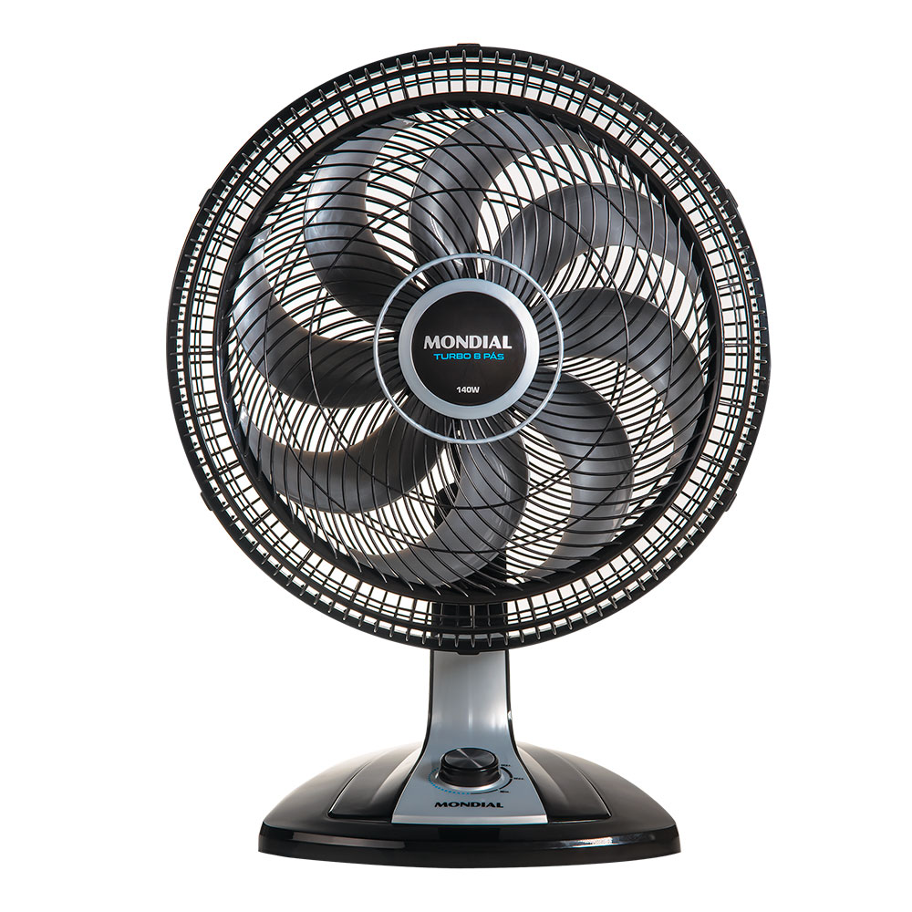 O Ventilador de Mesa Turbo Preto 40cm VTX-40-8P Mondial 127v vem com 8 pás, 20% mais vento, 140w de potência, supersilencioso, controle de velocidade, inclinação vertical regulável direciona o fluxo de ar e sistema oscilante que permite ampla distribuição do ar pelo ambiente. Fácil de transportar, com porta-cabo na base e grade desmontável que facilita a limpeza.